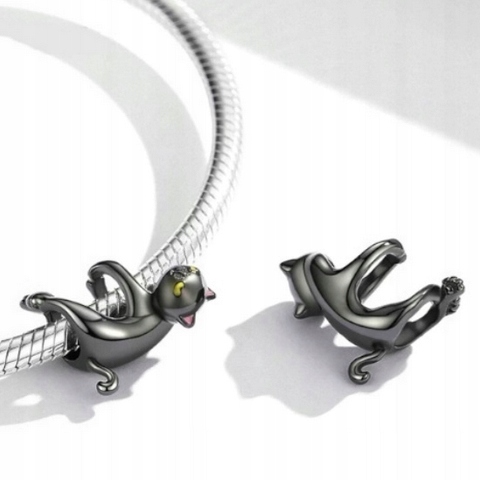 Zawieszka SREBRO 925 Charms Koralik Czarny Kot