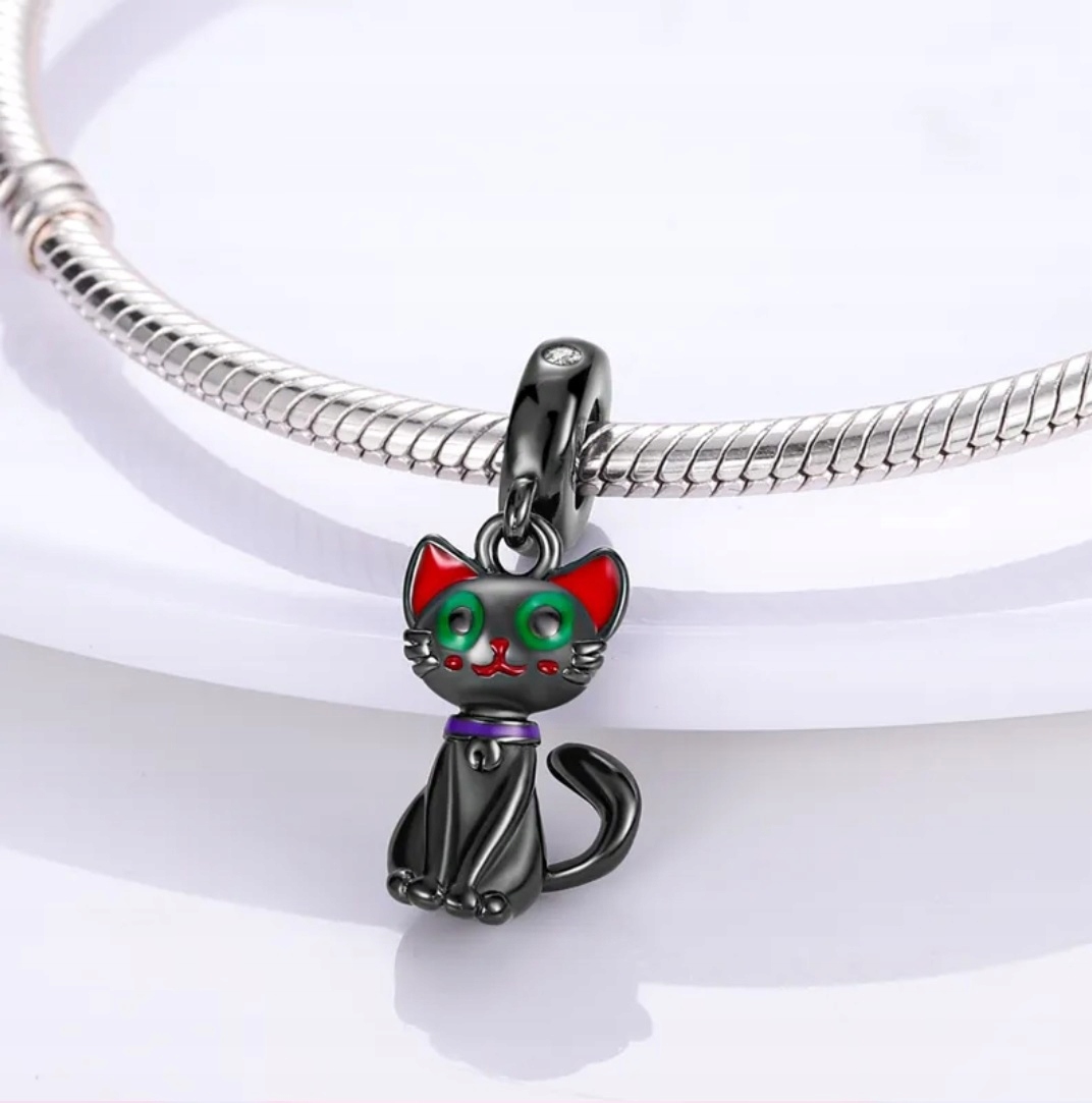 Zawieszka SREBRO 925 Charms Koralik Czarny Kotek