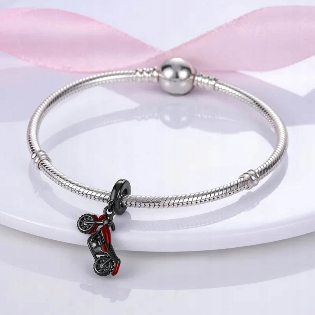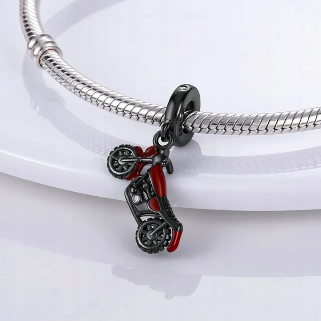 Zawieszka SREBRO 925 Charms Koralik Czarny Motor