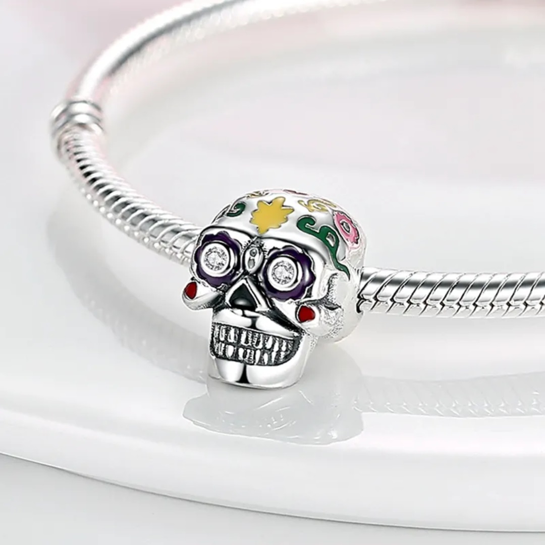 Zawieszka SREBRO 925 Charms Koralik Czaszka Halloween