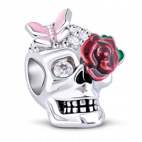 Zawieszka SREBRO 925 Charms Koralik Czaszka Motyl