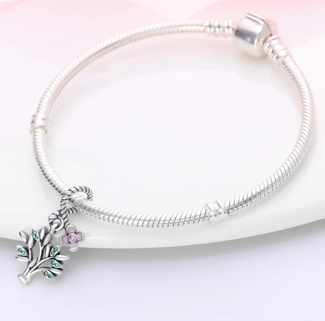 Zawieszka SREBRO 925 Charms Koralik Drzewo Kwiat