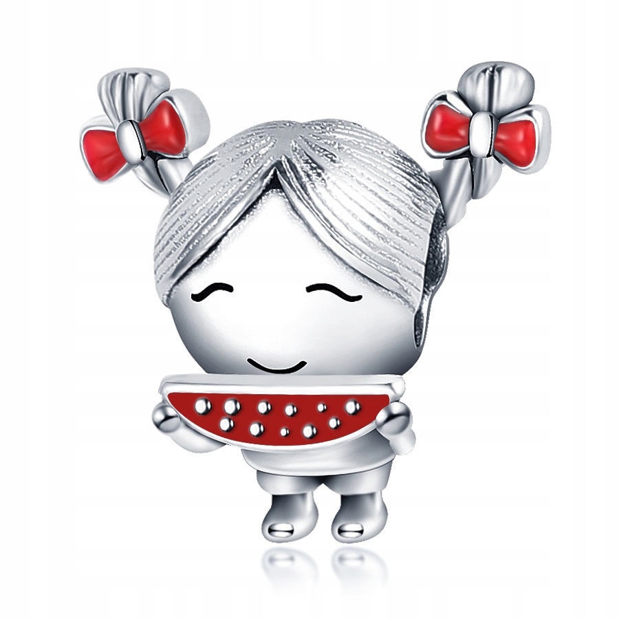 Zawieszka SREBRO 925 Charms Koralik Dziewczynka z Arbuzem