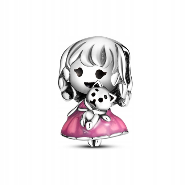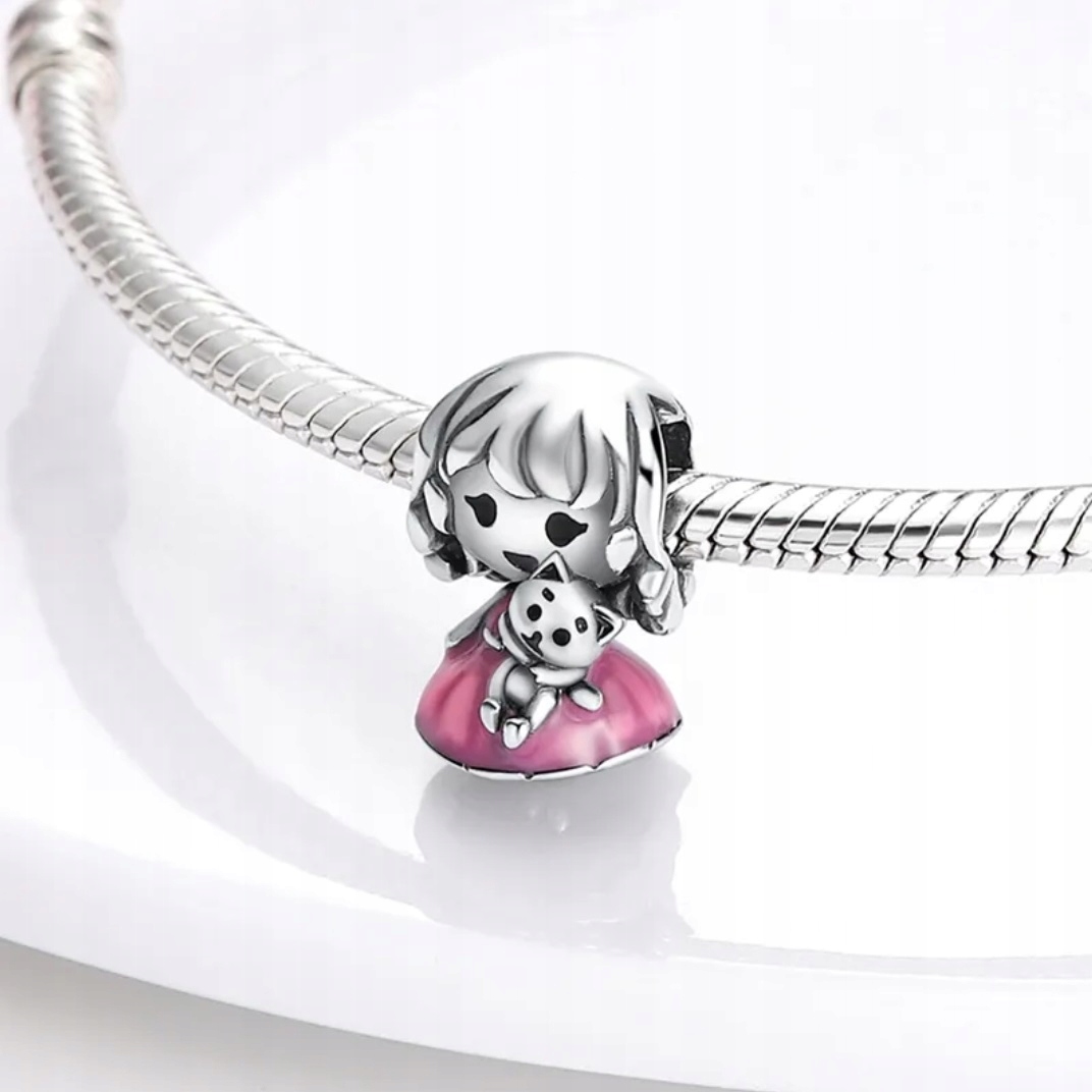 Zawieszka SREBRO 925 Charms Koralik Dziewczynka z kotkiem