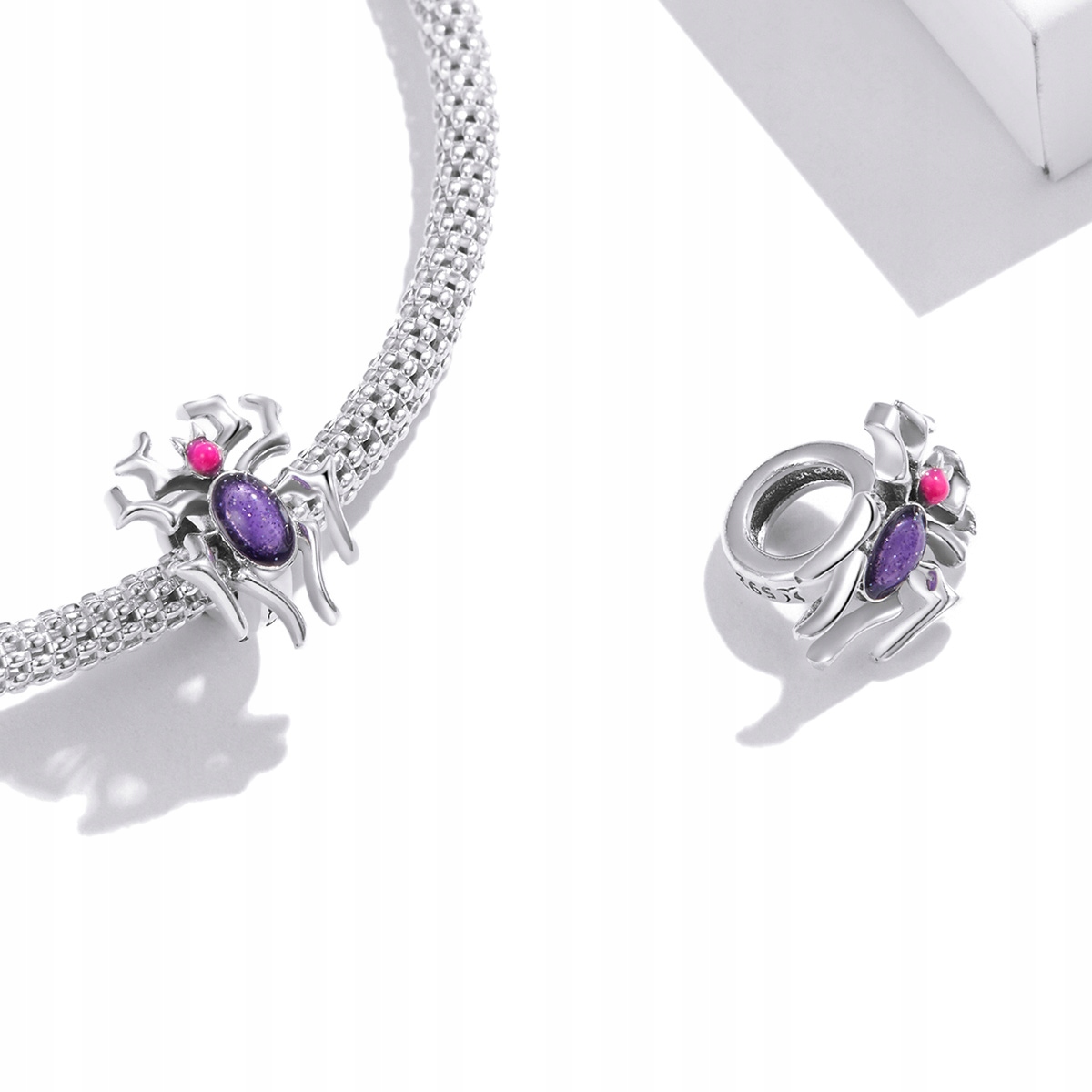 Zawieszka SREBRO 925 Charms Koralik Fioletowy Pająk