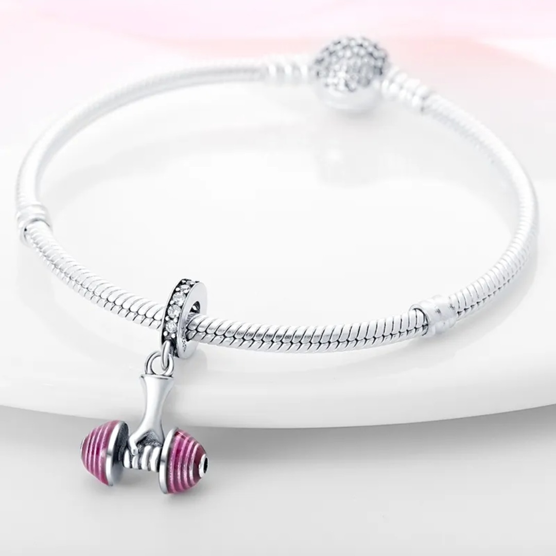 Zawieszka SREBRO 925 Charms Koralik Hantla Siłownia