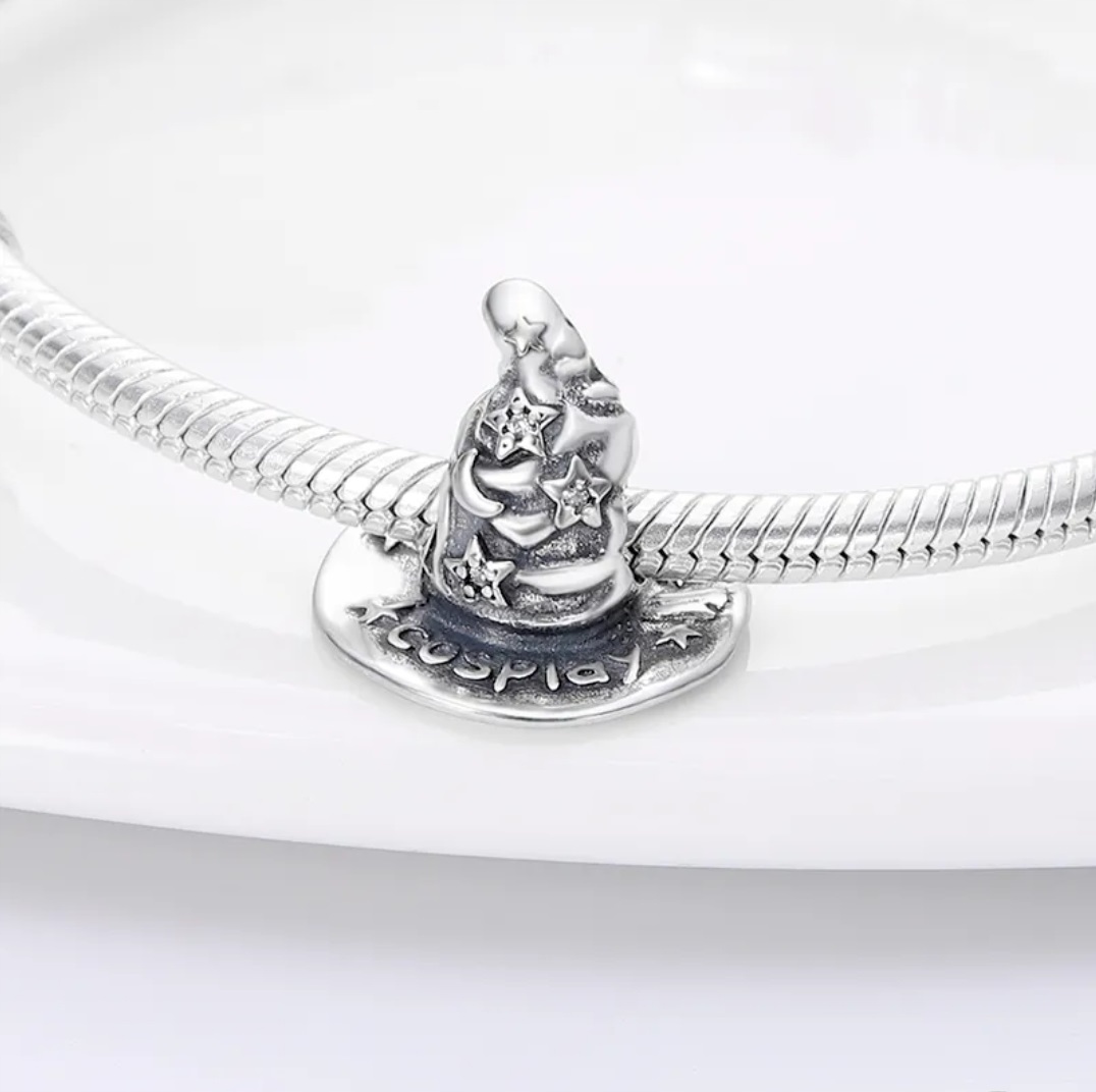 Charms przedstawia czapkę czarodzieja z motywem gwazd.