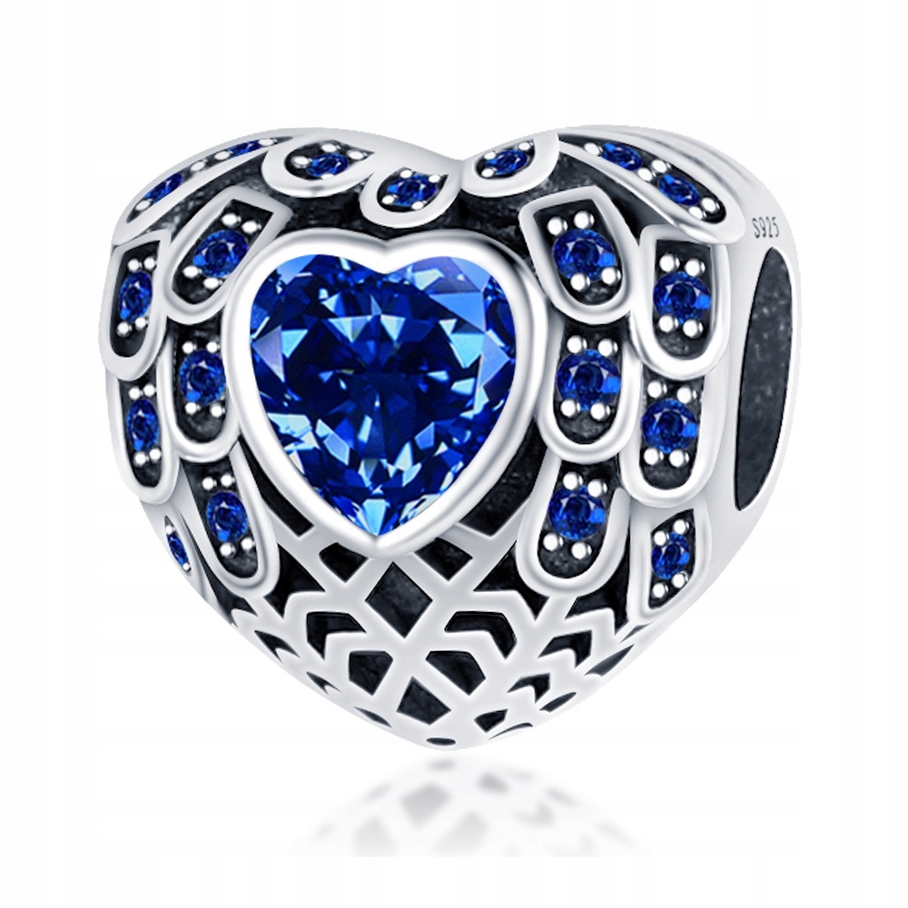 Zawieszka SREBRO 925 Charms Koralik Niebieskie Serce