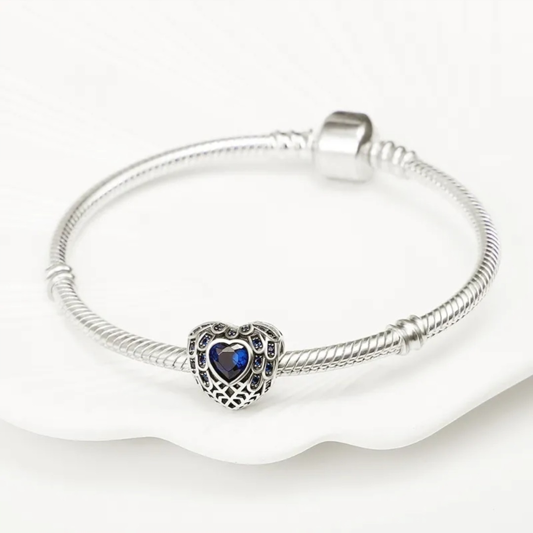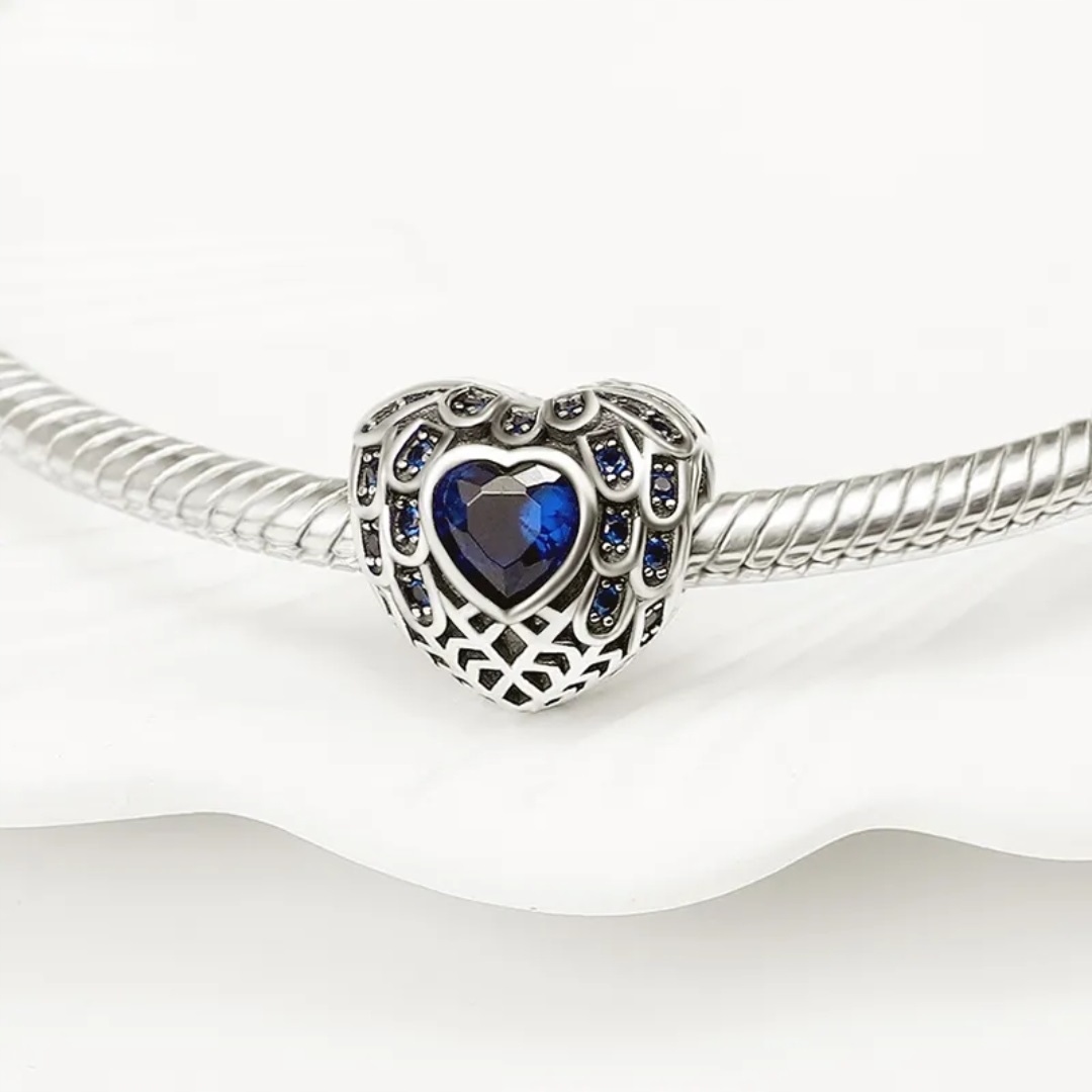 Charms przedstawia niebieskie serce wysadzane mnóstwem cyrkonii.