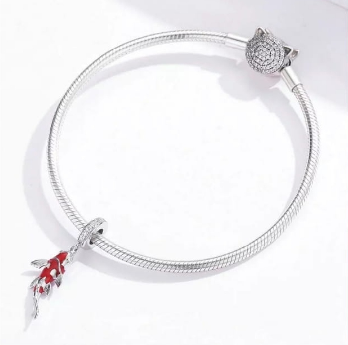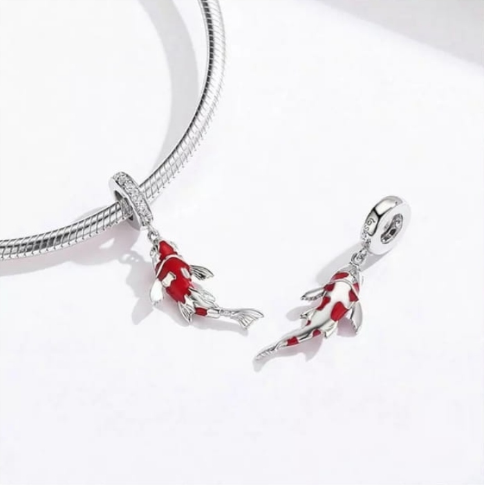 Charms przedstawia japońskiego karpia Koi, który symbolizuje powodzenie w interesach i dostatek.