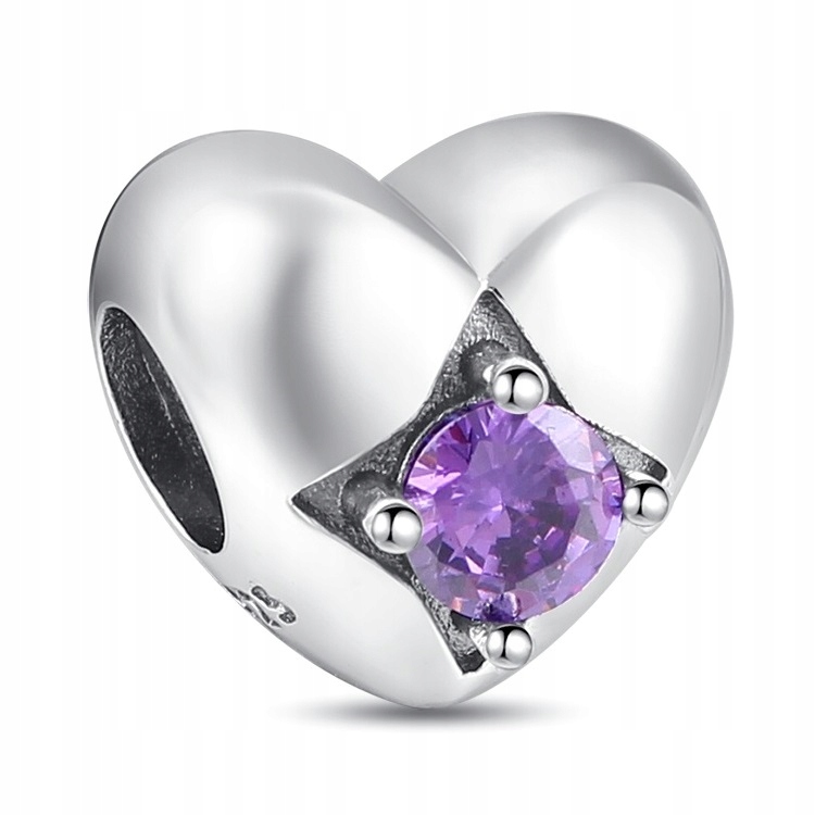 Charms w kształcie serca zdobiony dwiema dużymi, fioletowymi cyrkoniami.