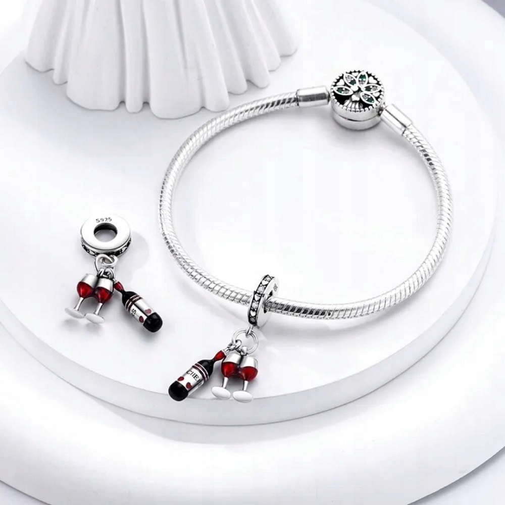 Zawieszka SREBRO 925 Charms Koralik Wino Kieliszki