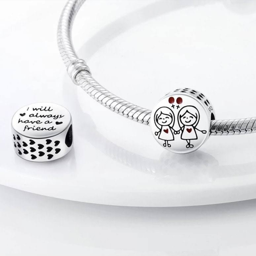 Charms przedstawia dwie trzymające się za ręce dziewczynki.